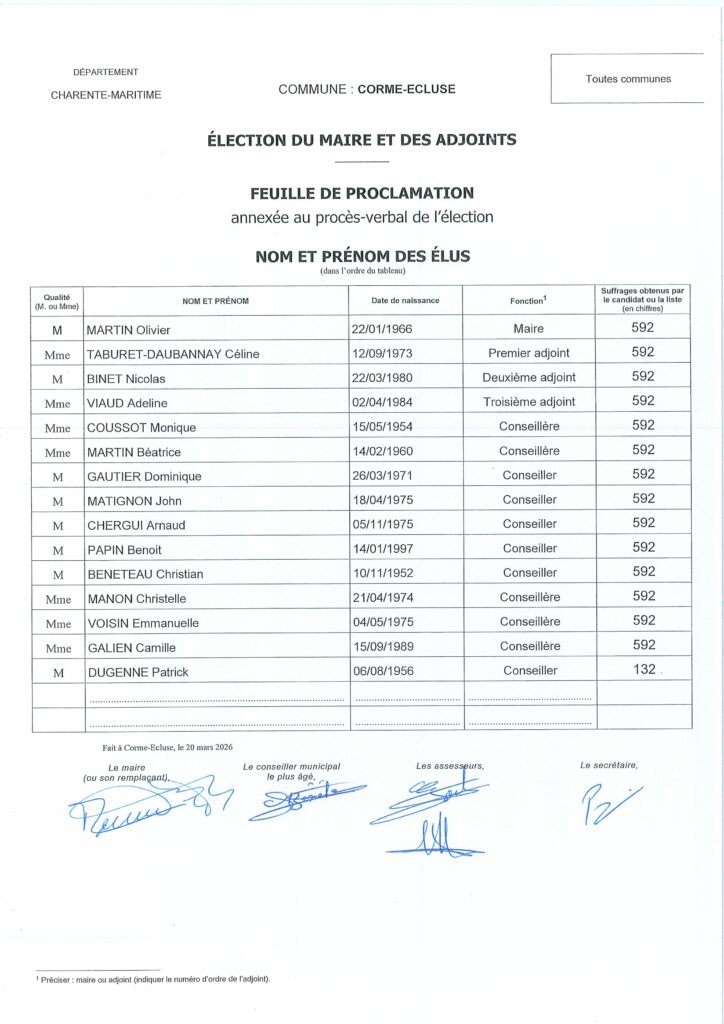 ÉLECTION DU MAIRE ET DES ADJOINTS