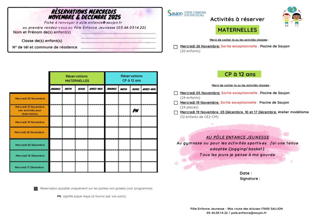 Tél : 05.46.05.14.22 Courriel : enfance@mairie-saujon.fr
