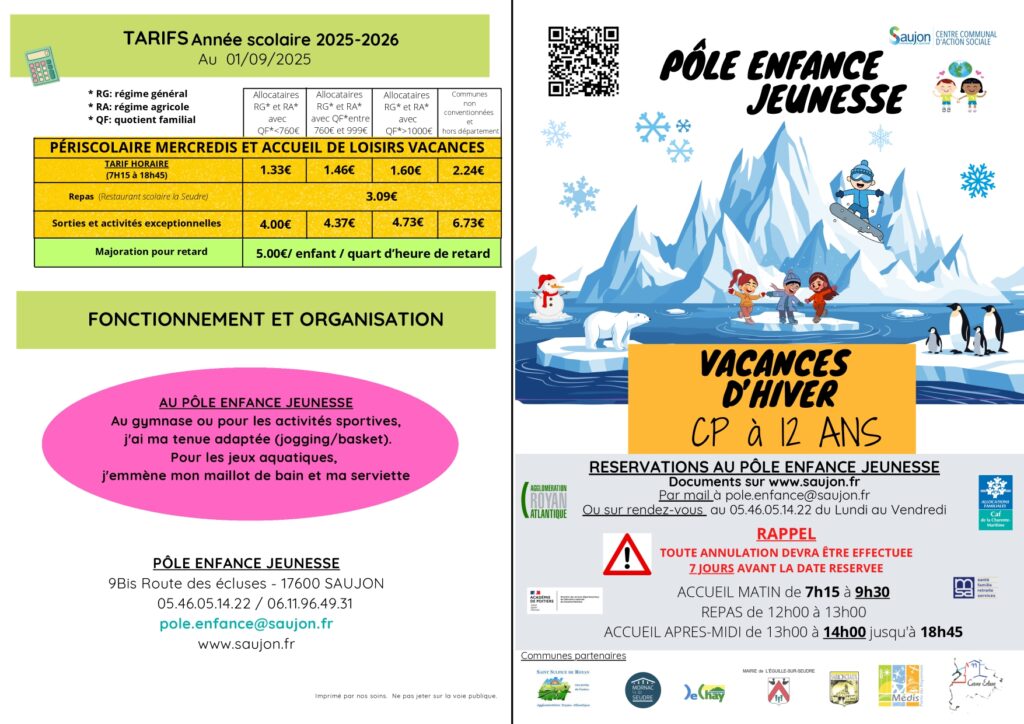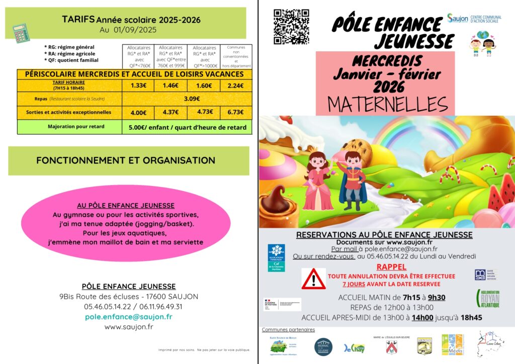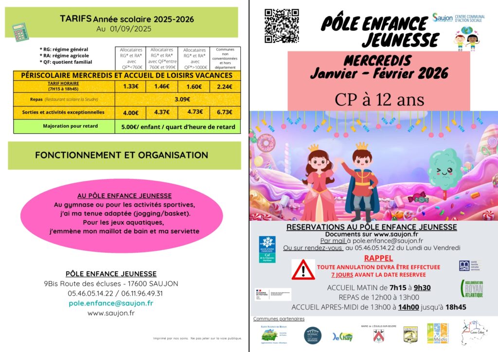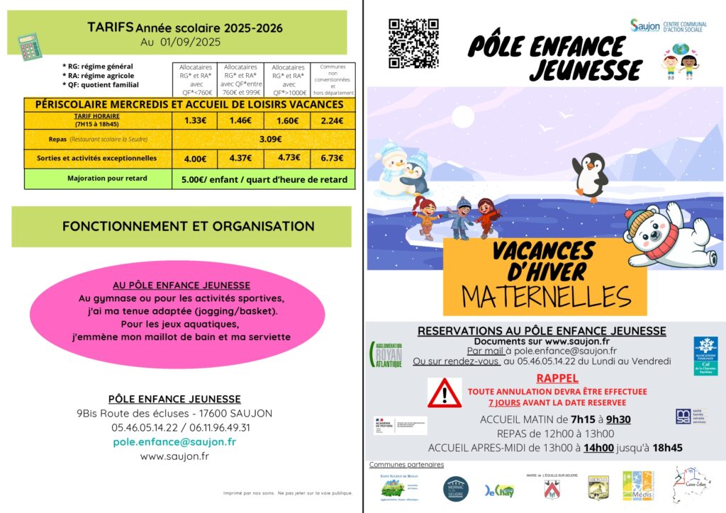 Retrouvez toutes les informations du Pôle enfance de Saujon via ce lien.