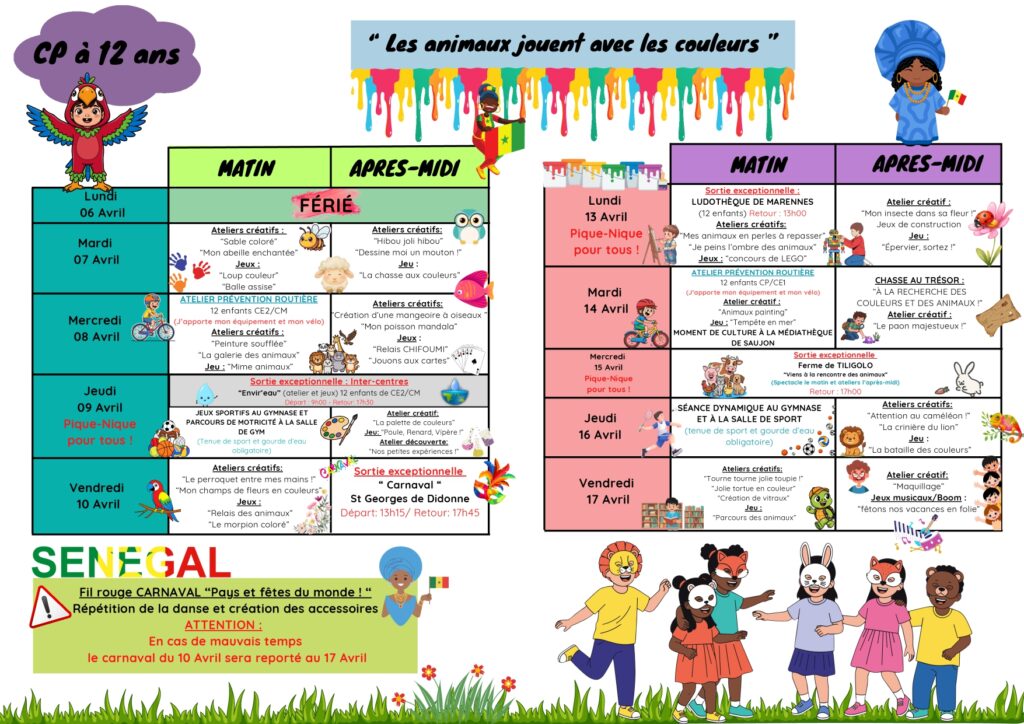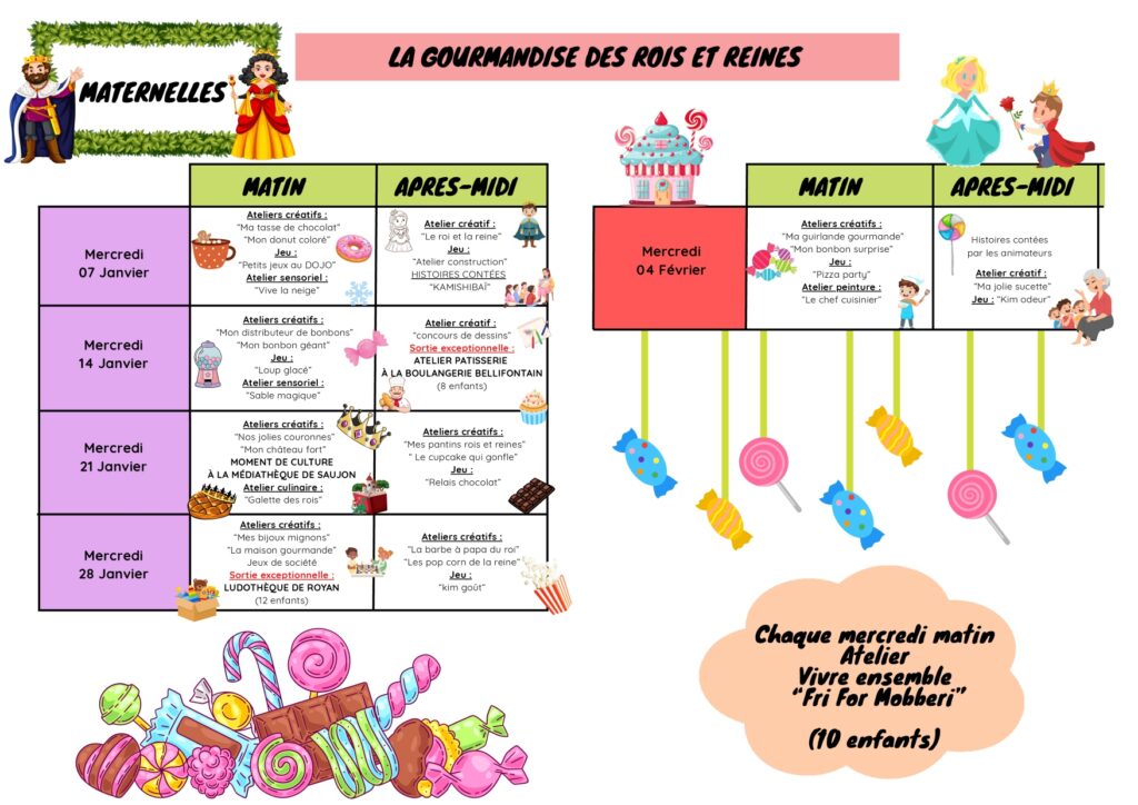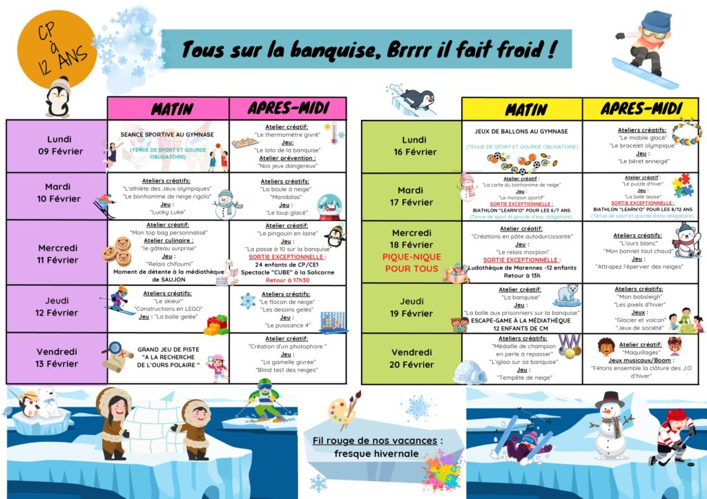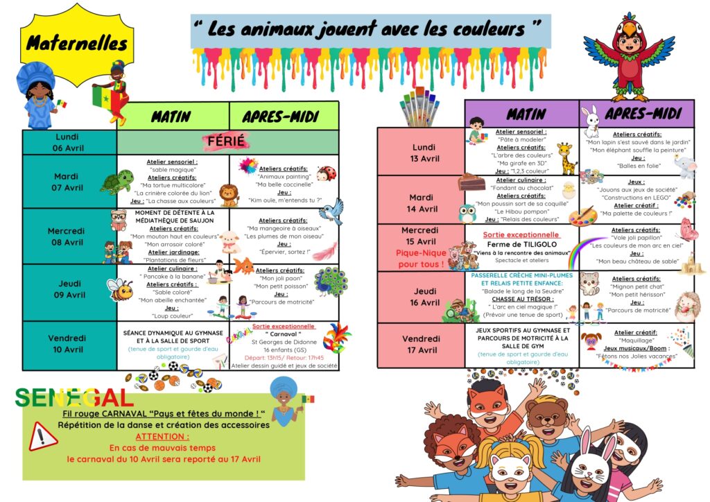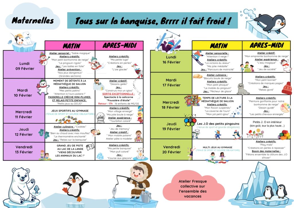 * ces horaires peuvent être modulables en fonction des activités et des soirées proposées.