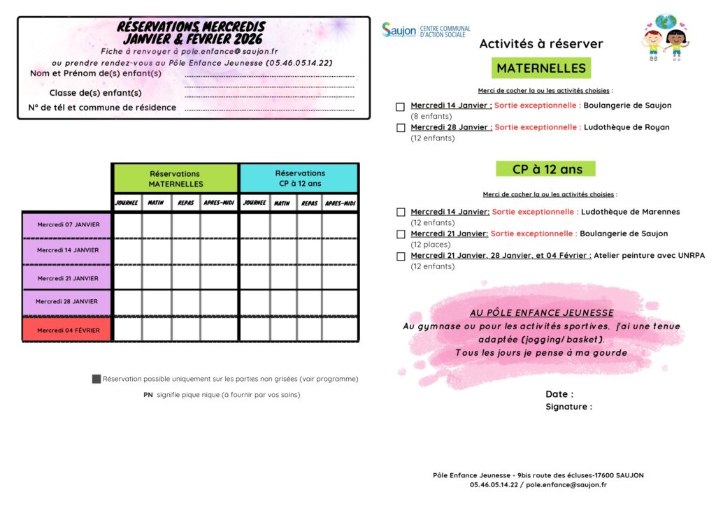 Tél : 05.46.05.14.22  Courriel : enfance@mairie-saujon.fr