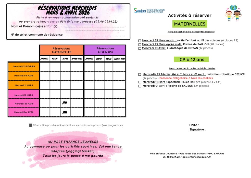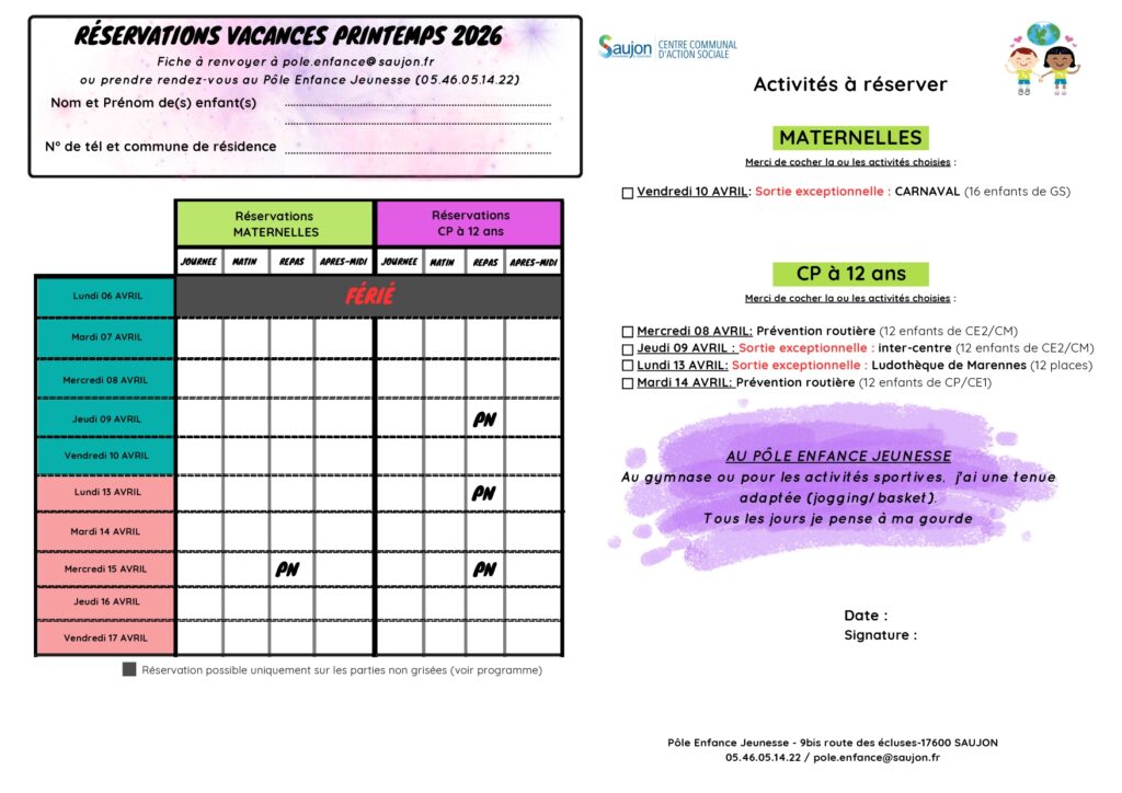 Tél : 05.46.05.14.22 Courriel : enfance@mairie-saujon.fr